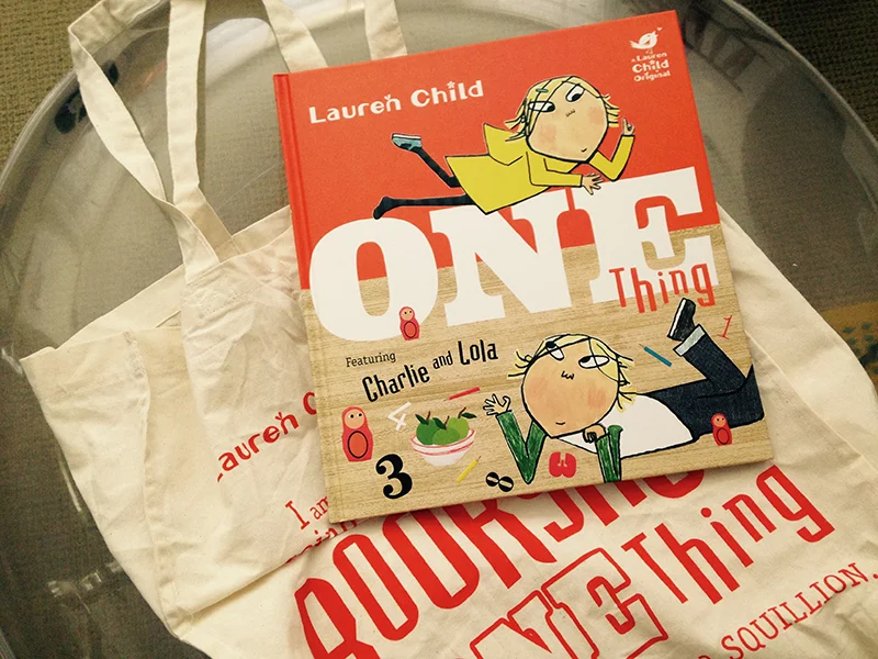 Lauren Child's new Charlie and Lola picture book, One Thing, was launched on top of Hachette's brilliant building on Victoria Embankment in London tonight. It's an excellent counting book full of red numbers and Charlie and Lola's unique interpretation of numeration. Not only were there large numbers, but countless books being signed by the author. And there were cup cakes. About one hundred of them to be exact. One is shown below.