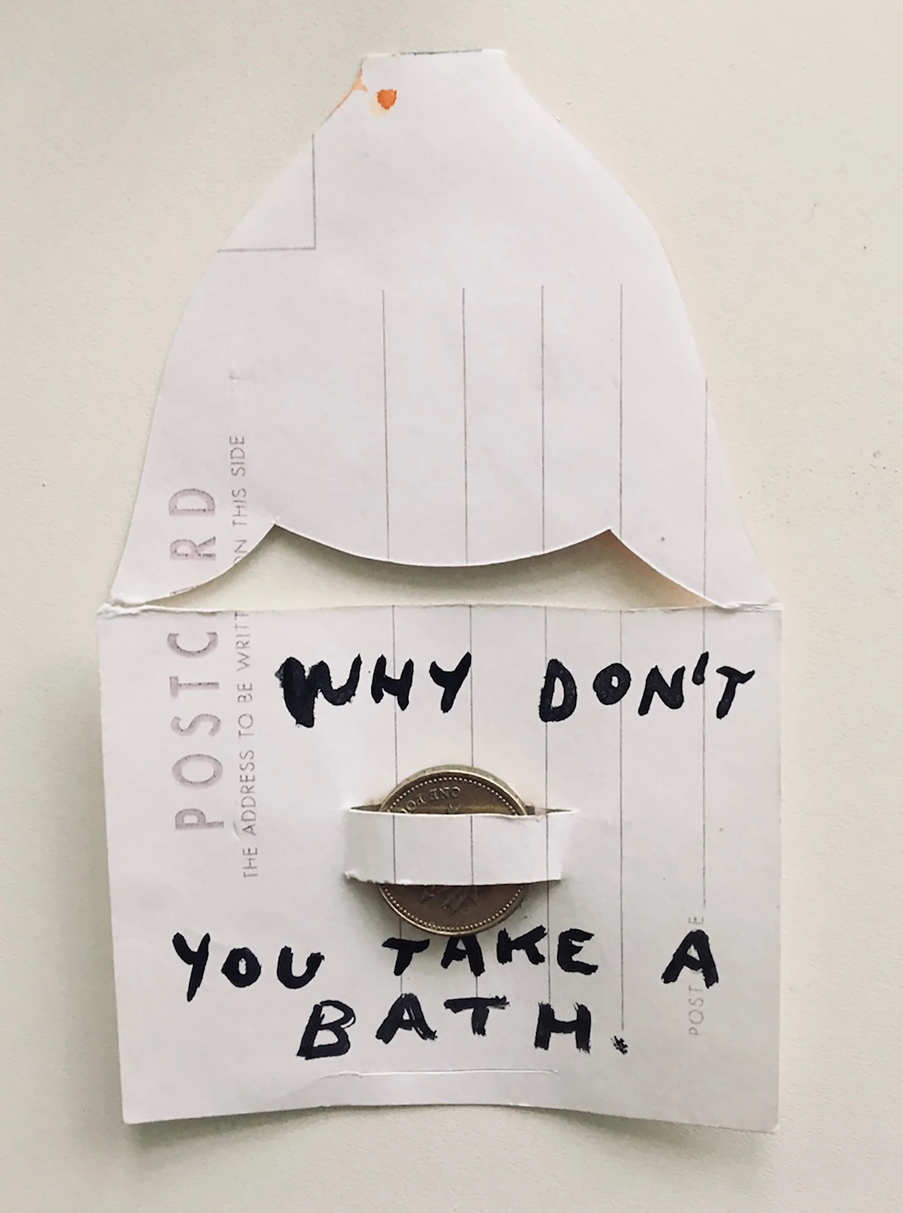 Years ago I lived in a room and shared a bathroom with an actress who lived on the same floor. We had to put a gold coin in a meter if we wanted to take a bath. The actress was even poorer than me because I once found her sharing her bath with all her clothes to save on laundry costs. (I would use the laundrette down the road every Saturday afternoon). After that encounter I would make her donations of bath money. For some reason she kept this, probably because it is still loaded with a coin.