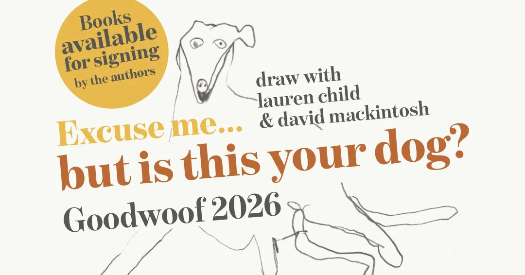 I’m doing a drawing event for children with Lauren Child at Goodwoof 2026 on Sunday May 17th. You can find out more at the Goodwoof website. I will be selling copies of my only dog related book My Dog Hen through the official Goodwoof bookshop and will be happy to sign copies, or stamp them with a muddy paw. You may even bring your own dog – in fact there will be more dog things to do than human things, or maybe it’s even.