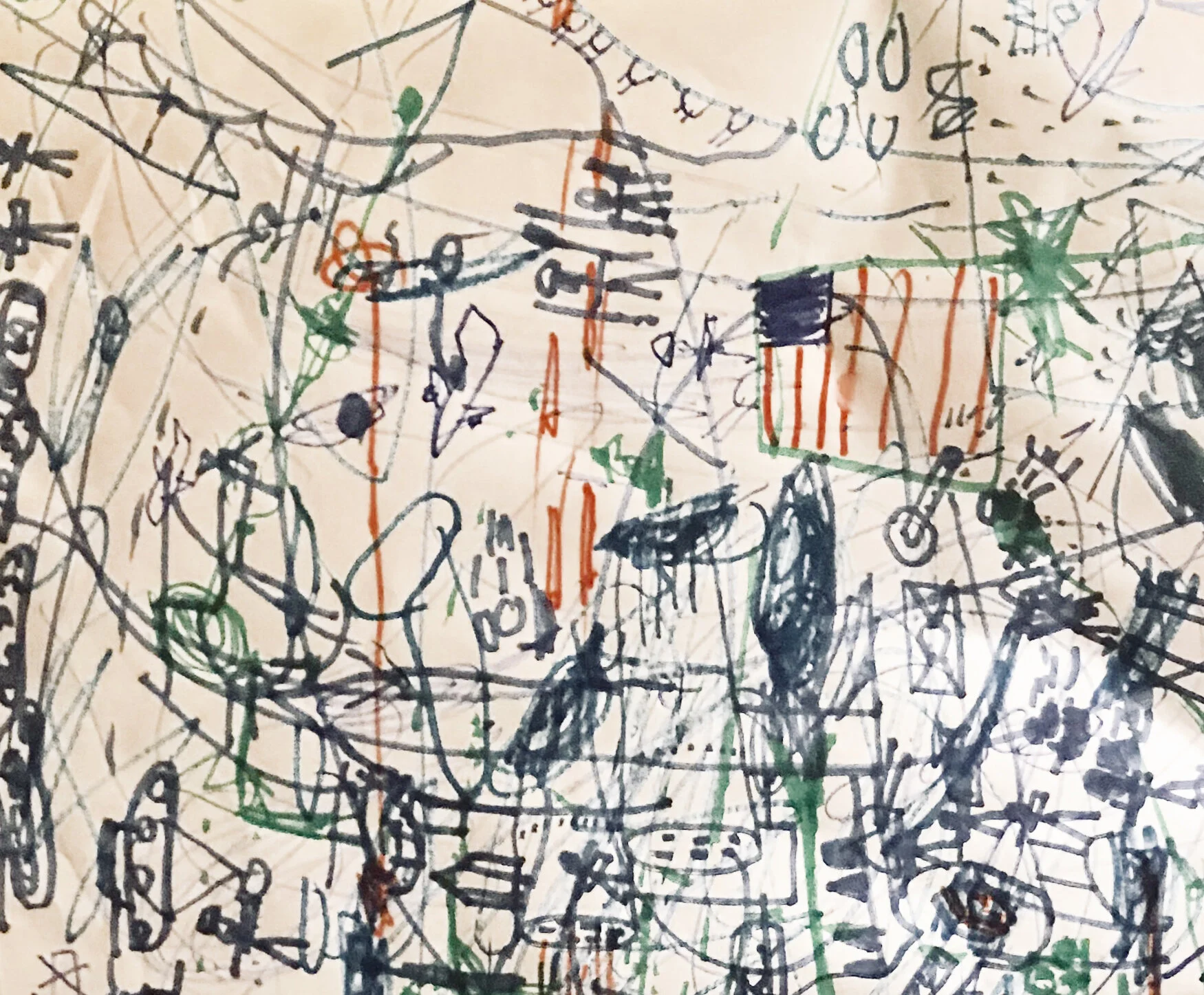 At Seven Stories in Newcastle, MuMu and Lox are on show in the Drawing Words Exhibition. They have finally found a re-use for the glass elevator exhibit left over from that Roald Dahl exhibition. It reminds me of the page in the book where they catch a lift up to the observation deck of the tall building. Lauren Child took the picture and sent it to me. She’s very thoughtful.